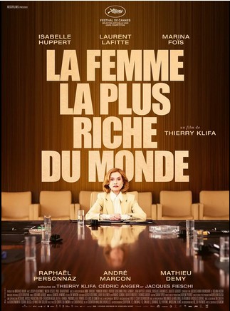 Séance de 20h00 : LA FEMME LA PLUS RICHE DU MONDE de Thierry Klifa avec Isabelle Huppert, Laurent Laffite et Marina Foïs - Comédie dramatique - 2h03.